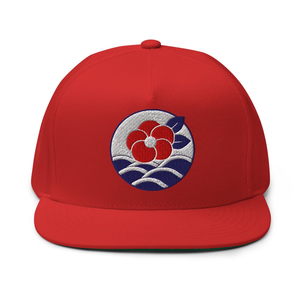 伊豆大島ポータルセレクト(いずおぽ)のオリジナルロゴを刺繡したフラットビルキャップです。